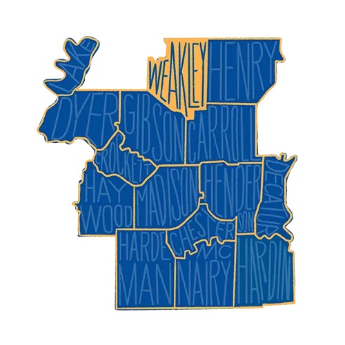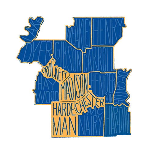United Way of West Tennessee serves 15 counties within the Southwest and Northwest regions: Carroll, Chester, Crockett, Decatur, Dyer, Gibson, Hardeman, Hardin, Haywood, Henderson, Henry, Lake, Madison, McNairy, and Weakley Counties.